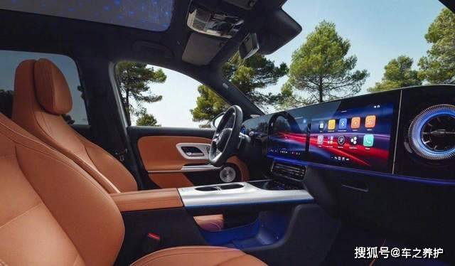 进入车内,新一代GLB的座舱设计将豪华感与科技感推向新高度。其核心是一套由10.25英寸全液晶仪表、14英寸中控触摸屏及可选装的14英寸副驾娱乐屏组成的“奔驰超级屏幕”。这套大联屏的图形界面由游戏引擎驱动,操作流畅度与视觉效果显著提升。车机系统搭载奔驰最新的第四代MBUX智能交互系统,并内置基于ChatGPT4o大模型开发的MBUX虚拟助手,支持自然对话与多轮交互,彻底改变了传统人机交互的刻板模式。中控台采用简洁的悬浮式设计,储物格、杯架和无线充电板经过重新规划,既提升了科技氛围,又兼顾了日常使用的便利性。