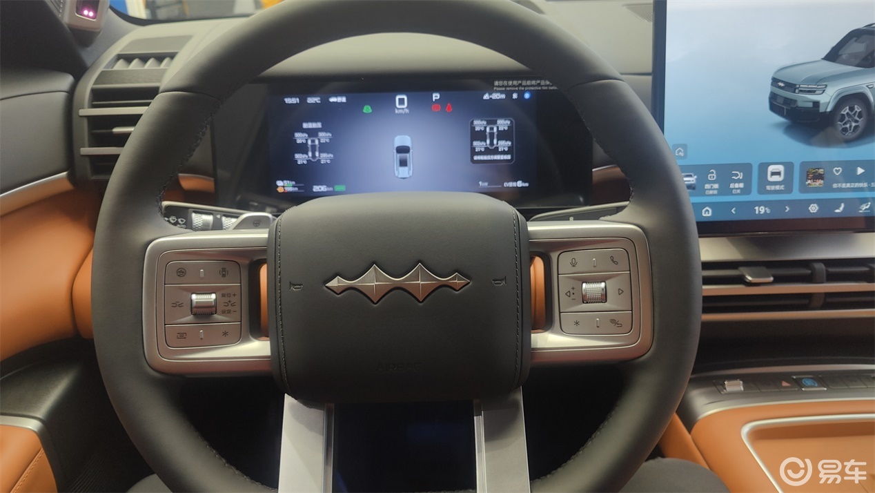 车机系统的交互体验是钛7的一大亮点。在近一年“迪系”车型中,其变化十分显著。仪表屏底色更干净,核心信息获取更加便捷;中控屏布局改为主流的横屏 + 底部Dock栏,搭配桌面横向排列的小卡片,观感简洁。Dlink系统的流畅性和手感都有所提升,帧率高,跟手程度好。不过,仪表和HUD的动效设计在视觉上缺乏高级感,中控屏的3D车模存在锯齿边缘,仍有优化空间。比亚迪保留了大量实体控件的传统值得称赞。方向盘两侧、主驾车门内侧、顶棚等部位保留了众多快捷功能实体按键,手感经过优化,有很好的韧劲,且根据不同功能交互有针对性设计,例如方向盘左右两侧巡航车速调节采用上下拨杆,音量调节采用外观相似的滚轮,十分人性化。唯一不足之处在于方向盘全系只有手动四向调节。