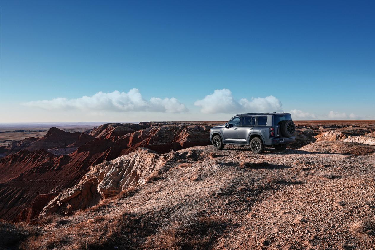 在车身尺寸方面,新车长5070毫米、宽1976毫米、高1920毫米,轴距达到2850毫米。庞大的车身尺寸和超过两米的车宽,为车内乘客提供了充裕的舱内空间。同时,接近角31度、离去角25度、最小离地间隙235毫米的数据,也为其出色的通过性奠定了坚实基础,无论是崎岖山路还是复杂地形,都能轻松应对。