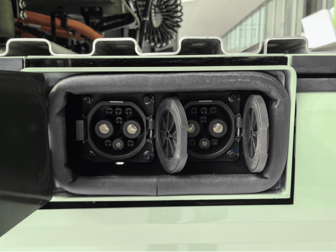 动力与续航表现是G6000E的核心竞争力。车辆搭载潍柴600.63kWh大容量动力电池,配合双200/260kW高效电驱桥,形成“黄金动力组合”。这一配置不仅让满载起步、爬坡超车等操作游刃有余,更能适应干线物流、港口集疏运等复杂场景的需求。动力电池采用底置布局,均匀分布于车架两侧,既降低了车身重心以提升稳定性,又通过护板设计兼顾了防护、装饰与空气导流功能。实测数据显示,600.63kWh的电池容量可充分满足长续航需求,有效缓解用户的里程焦虑。
