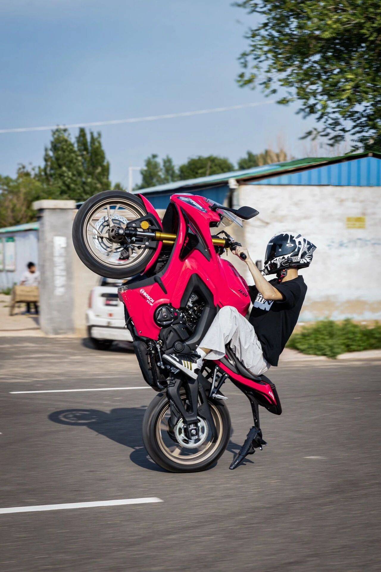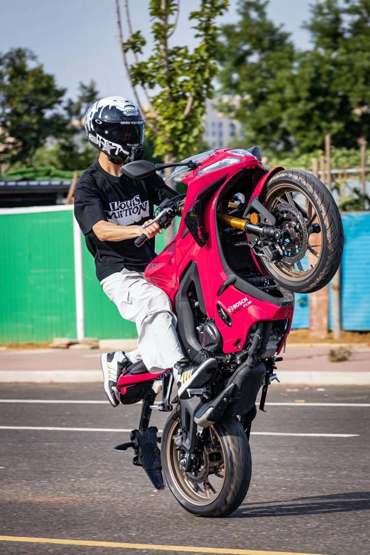 需要特别强调的是,视频中展示的翘头动作属于极限驾驶范畴。即便在封闭测试场地,此类操作仍伴随较高风险——轮胎抓地力突变、重心急剧转移都可能导致车辆失控,轻则造成车身部件损坏,重则引发骑手摔车受伤。根据道路交通安全法规,在公共道路进行此类危险动作更将面临法律追责。