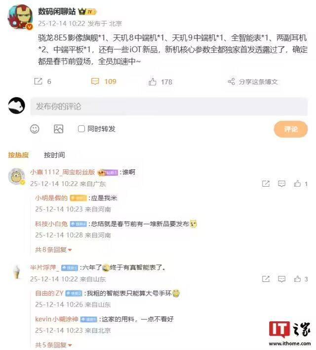 近日,微博上有博主爆料称,某知名手机厂商计划在春节前夕推出一系列新品,引发了网友的广泛关注。结合评论区讨论,该厂商疑似为小米。