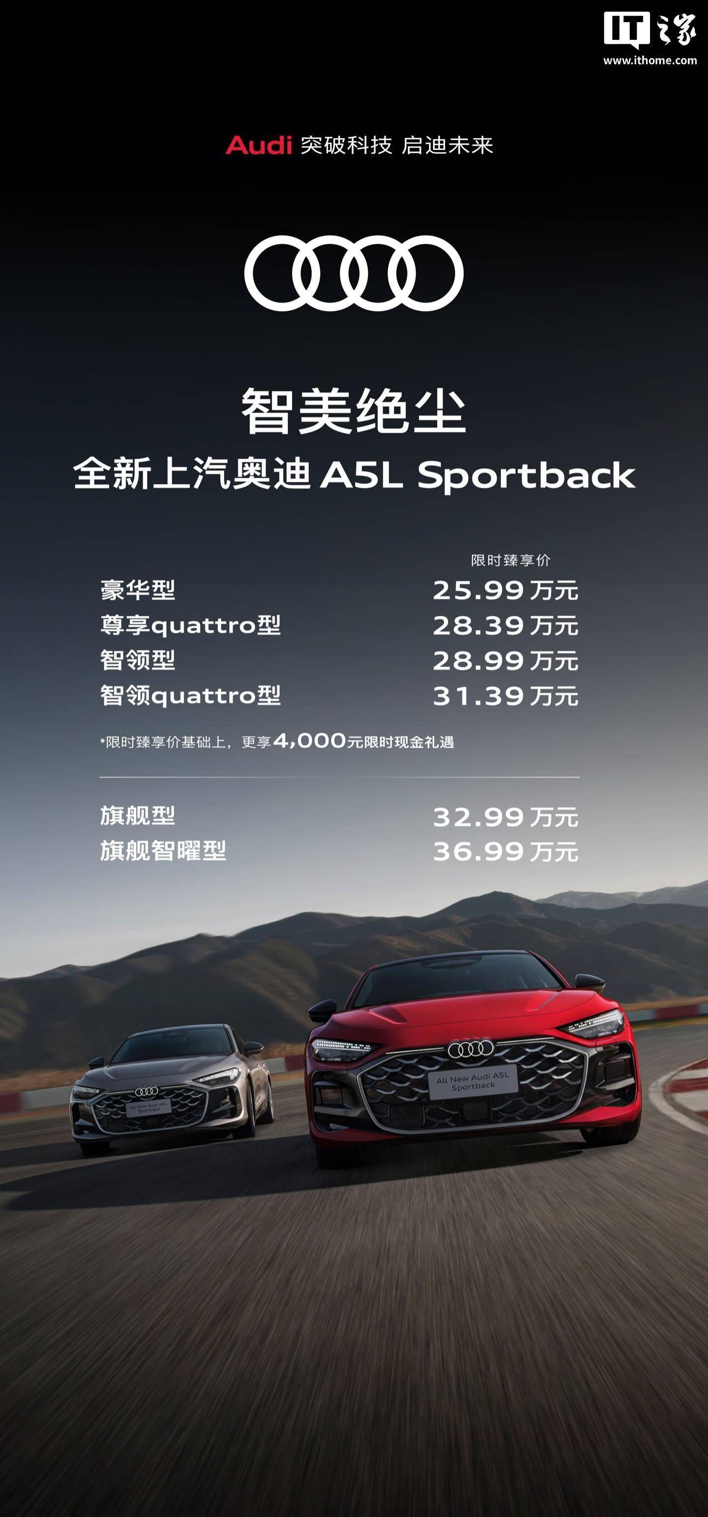 上汽奥迪近日宣布,旗下全新A5L Sportback红运限定版正式开启限量发售,全球仅供应500台,限时臻享价为29.19万元。这款以“新年红运”为设计灵感的特别版车型,通过独特的色彩搭配与运动化细节,为消费者带来兼具豪华感与性能体验的个性化选择。
