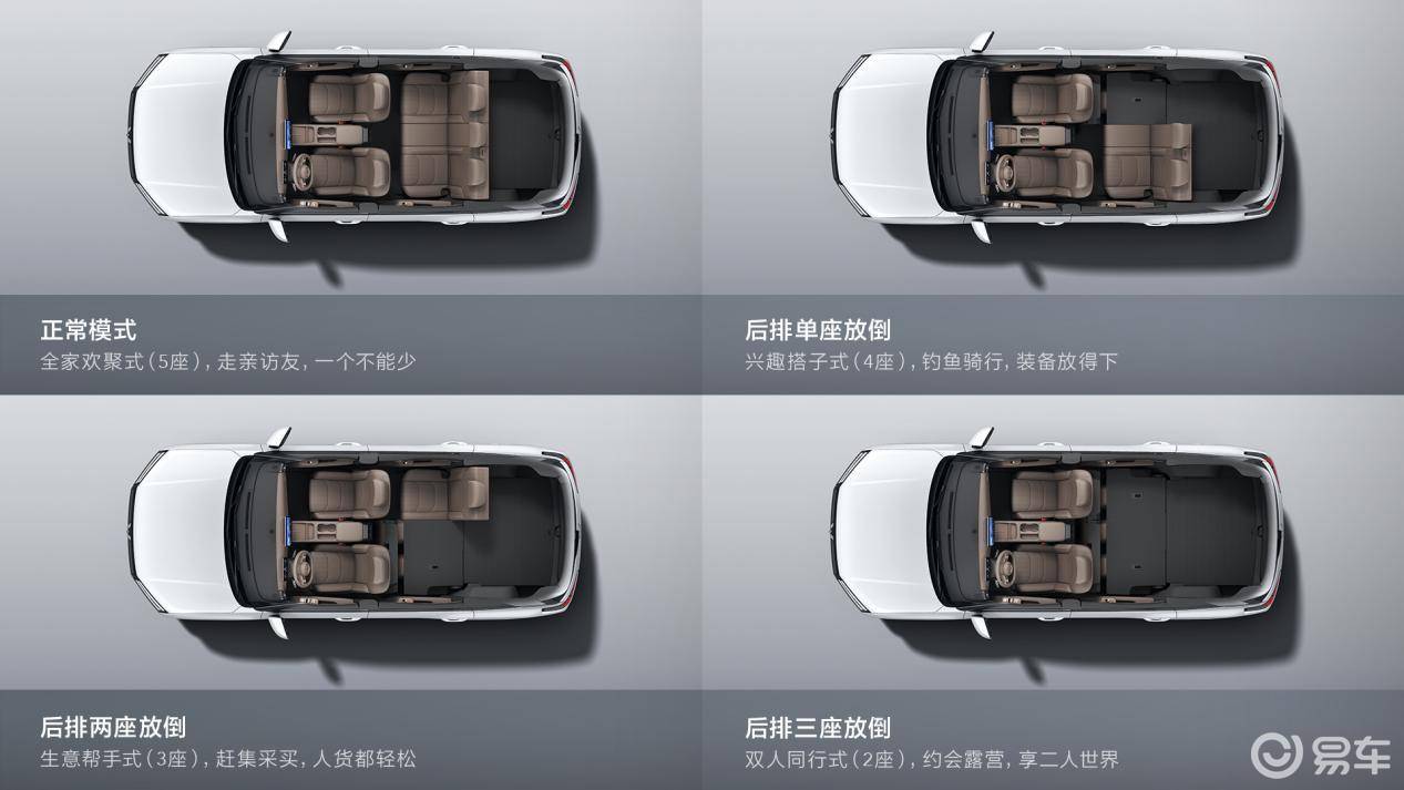 储物空间的巧思同样令人惊艳。双层后备厢设计提供184L隐藏下沉空间与763L常规容积,整体可达947L;后排座椅放倒后,最大扩展容积提升至1945L,配合超大尾门开口与低门槛设计,大件物品搬运轻松省力。车内更隐藏着多项实用配置:行业独创的32L后排座椅下方下沉式储物槽,可收纳工具包、折叠桌等户外装备;全车25处人性化储物格,让手机、钥匙等小物各有归处;车顶行李架的加入,进一步拓展了装载可能性,满足用户对“自由储物”的期待。