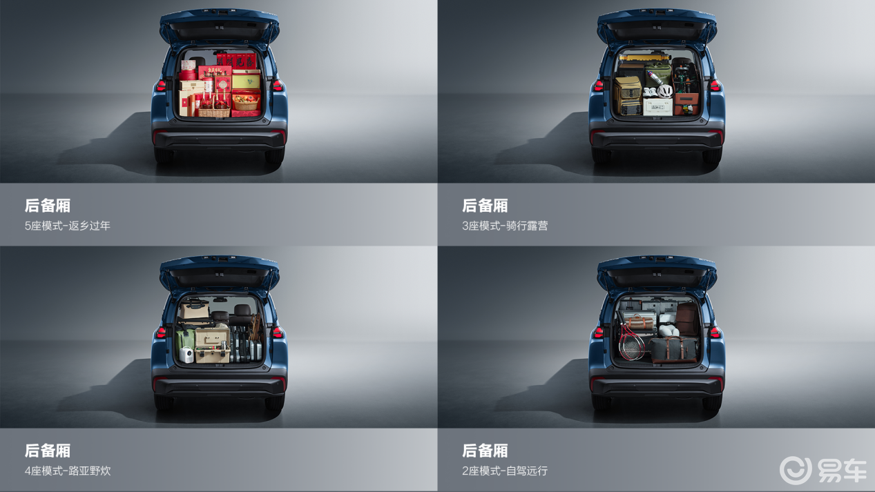 装载能力的灵活性是星光560的另一大亮点。后排座椅支持4/6分比例放倒,用户可根据需求在标准5座模式与超大载物空间间自由切换。日常家庭出行时,5座布局确保每排乘客的宽敞感;搬运山地车、钓具或货物时,单座或两座放倒即可扩展储物空间;若将三座全平放倒,后备厢可瞬间化身“露营大床房”,满足约会或户外露营的场景需求。双层后备厢设计进一步强化实用性——184L隐藏下沉空间与763L常规容积组合,整体可达947L;后排座椅放倒后,最大容积扩展至1945L,配合超大尾门开口与低门槛设计,大件物品的装卸更为便捷。