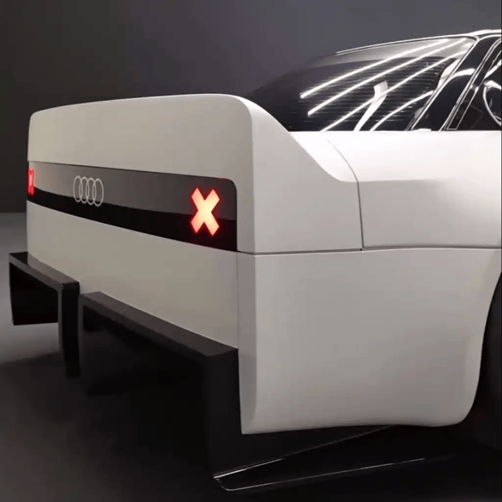 从外观设计来看,奥迪GT50概念车采用了极具辨识度的复古风格,车身线条硬朗且棱角分明,仿佛将人们带回了那个机械美学盛行的年代。车灯与前格栅的设计巧妙借鉴了奥迪经典车型的元素,但经过现代化的简化处理后,又增添了几分时尚气息。夸张的前后包围以及轮圈造型,则进一步强调了其赛车的身份与性能基因。