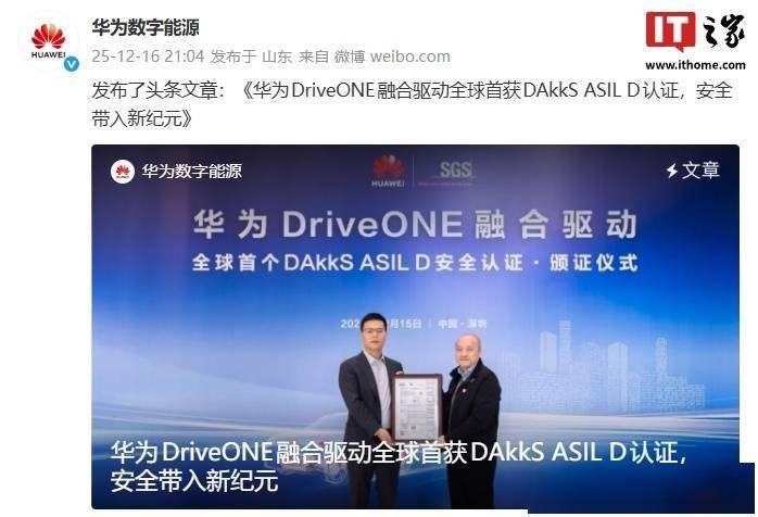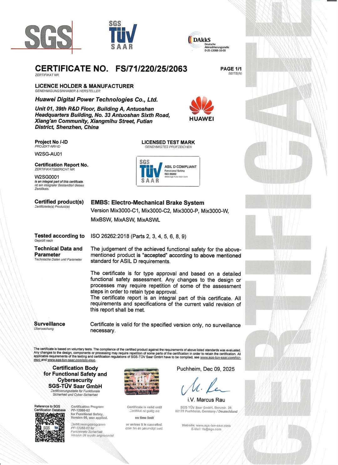 国际权威认证机构SGS通标标准技术服务有限公司近日向华为颁发了一项重要认证——融合驱动全球首个ISO 26262 DAkkS ASIL D等级认证证书。这一认证标志着华为在汽车功能安全领域达到了国际最高标准,彰显了其在技术研发和产品安全方面的卓越实力。