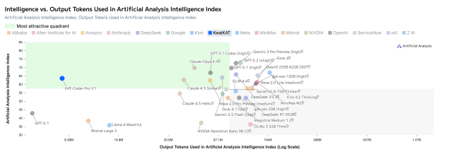 近日,快手KAT-Coder-Pro V1进行了1210版关键迭代,聚焦Agentic Coding领域核心能力升级,为全球开发者带来了更高效、更贴合业务场景的AI编码辅助体验。凭借此次迭代,KAT-Coder-Pro V1在权威评测机构Artificial Analysis(AA)榜单中表现亮眼,以64分综合评分跻身全球总榜TOP10,更以绝对优势在Non-Reasoning Model中斩获第一名,再次印证其在AI编码领域的顶尖实力。