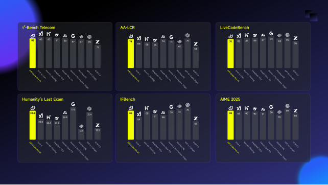工具调用能力领先:在Bench Telecom(Agentic Tool Use)中取得 89% 的优异成绩,充分验证其在复杂工具调用场景下的高效性与可靠性。