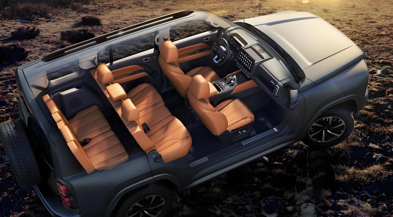 内饰设计延续实用主义风格,14.6英寸中控屏成为视觉焦点,同时提供5座与7座两种空间布局。座椅配置堪称亮点:前排座椅配备加热、通风与按摩功能,第二排座椅则标配加热与通风系统,兼顾越野场景的硬核需求与长途驾驶的舒适体验。车内空间布局灵活,可满足不同用户群体的出行需求。