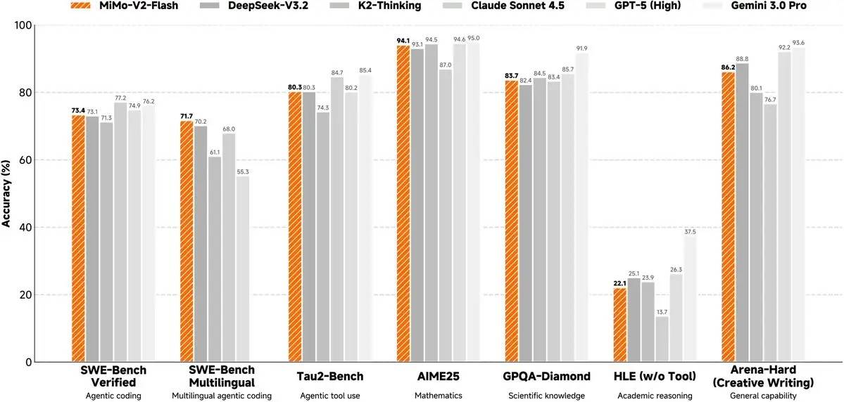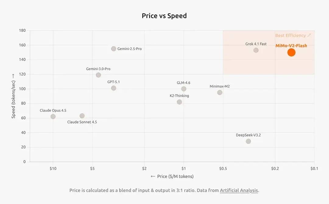 小米团队明确将该模型定位为Agent基座,核心优化方向聚焦三大领域:强化代码与工具调用能力以提升智能体交互效率;通过混合注意力机制突破推理速度瓶颈;探索后训练范式以激发强化学习潜能。官方数据显示,MiMo-V2-Flash在SWE-Bench Multilingual测试中超越GPT-5等闭源模型,代码能力跻身全球开源模型前列。更引人注目的是其成本优势——推理价格仅为Claude Sonnet 4.5的2.5%,生成速度却达2倍,API定价输入0.7元/百万tokens、输出2.1元/百万tokens,形成显著市场竞争力。