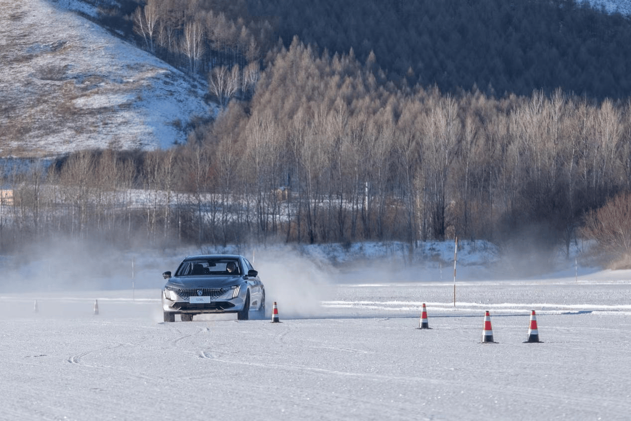 东风标致508L同样在测试中表现亮眼。在“雪地蛇形”项目中,车辆需在压实雪面上按规定路线进行高速蛇形绕桩,考察连续重心转移下的精准循迹与操控稳定性。508L以56.23km/h的平均车速、14.1秒的用时完成挑战,彰显了其灵活的转向响应与车身控制能力。