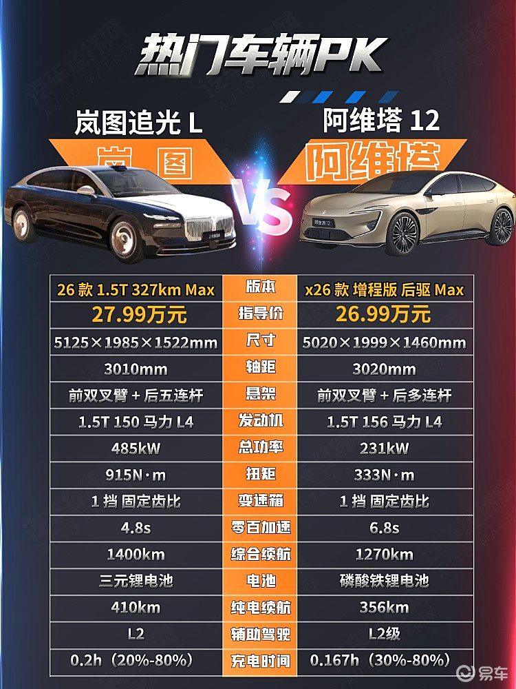在高端新能源汽车市场,华为系车型的竞争愈发激烈,同品牌间的“内卷”已成为常态。岚图追光L与阿维塔12作为中大型轿车领域的代表,凭借华为智能化技术的加持,在售价相近、定位重叠的背景下,成为消费者关注的焦点。两款车究竟谁更值得入手?需从设计、配置、性能等多维度展开对比。
