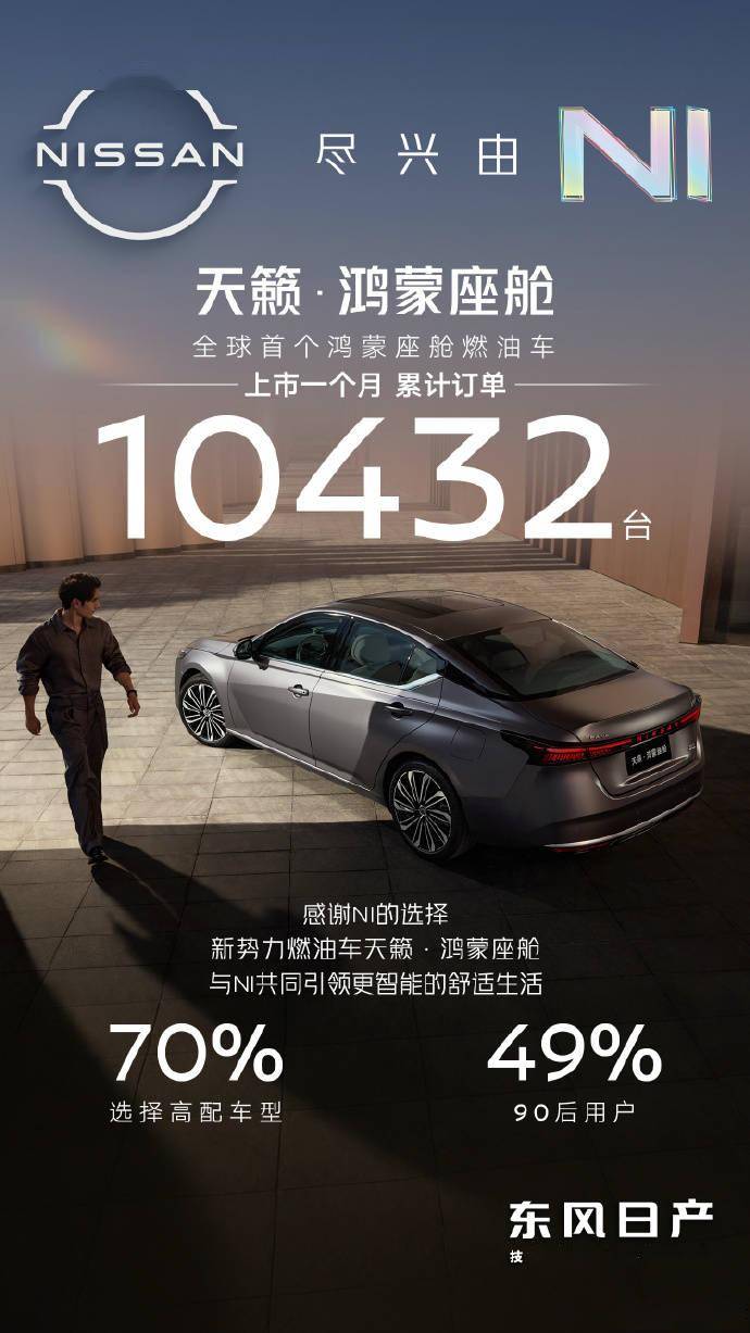 东风日产全新车型天籁・鸿蒙座舱自上市以来市场表现亮眼,上市首月累计订单量突破10432台。作为全球首款搭载鸿蒙座舱系统的燃油车型,该车于广州车展期间正式亮相,限时起售价为12.99万元,凭借智能化配置与动力性能引发广泛关注。