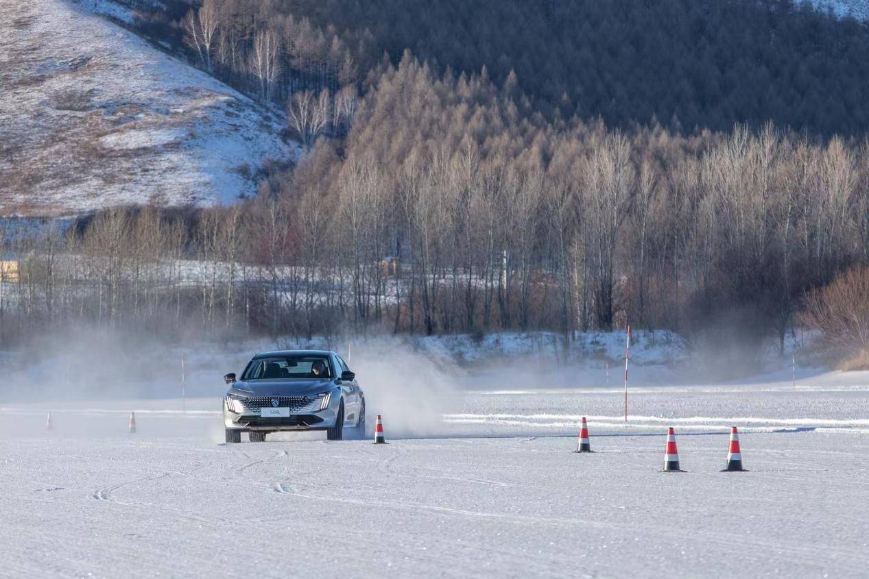 东风标致508L则在“雪地蛇形”与“雪地双移线”测试中展现了精准的操控功底。在“雪地蛇形”测试中,508L以56.23km/h的平均车速、14.1秒的用时完成高速蛇形绕桩,车身响应与动态跟随性表现卓越。而在“雪地双移线”测试中,508L以77.19km/h的入桩速度稳定通过,仅通过转向完成避障,动态响应与车身控制能力令人印象深刻。