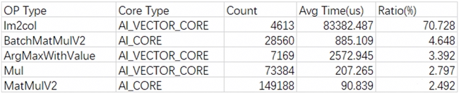 通过模型运行时打印算子运行时长占比,发现 Im2col 占总运行时长最高,高达 70.73%,故需要分析并消减该算子的调用。