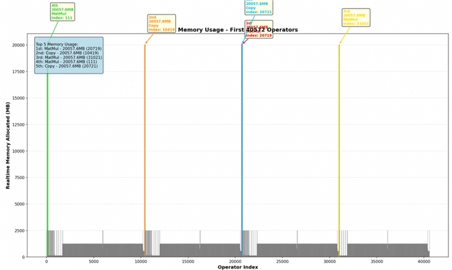 对求和的左侧部分进行分块操作,并调整合适的分块尺寸(chunk_size),成功降低了内存的峰值。我们后续又定位到其他可能导致内存溢出的位置,分别是:
