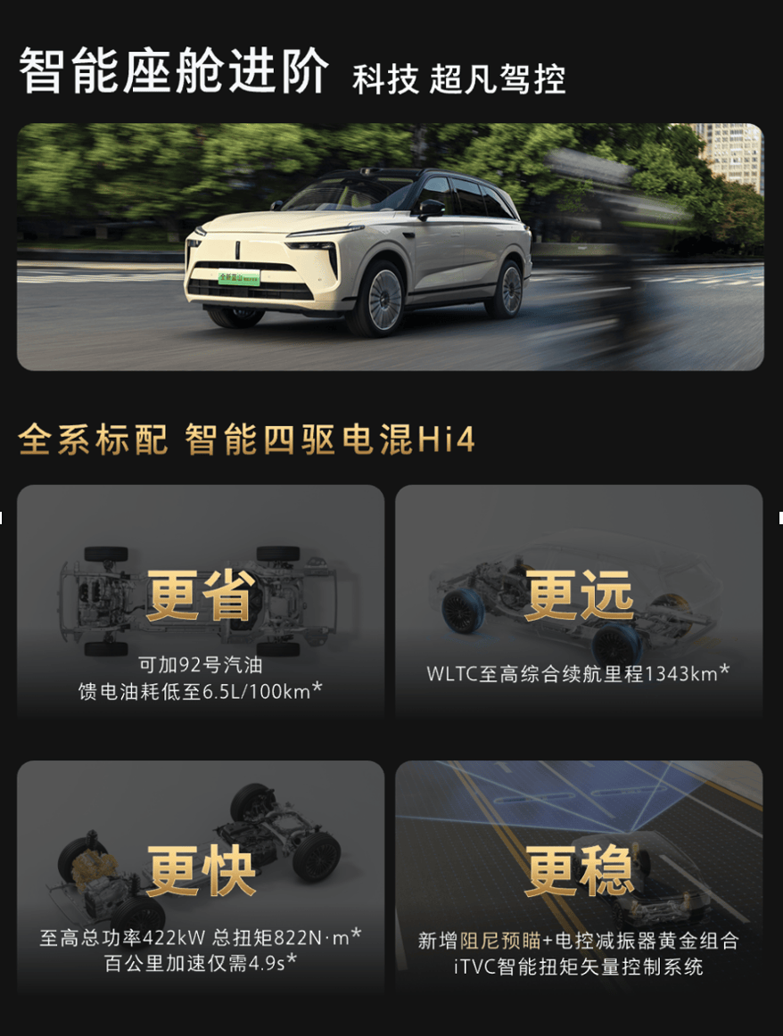 动力系统展现技术突破。Hi4性能版智能四驱电混技术采用四挡全速域直驱结构,实现前后轴50:50轴荷分配,配合iTVC智能扭矩控制系统,在提升行驶稳定性的同时优化能耗表现。官方数据显示,新车0—100km/h加速仅需4.9秒,馈电油耗低至6.5L/100km,综合续航里程达1343公里。底盘升级的阻尼预瞄功能可提前识别减速带等路况,自动调整悬架状态,为家庭出行提供更舒适的驾乘体验。