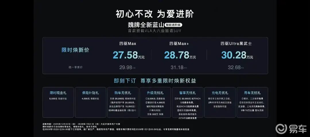 长城汽车旗下魏牌迎来重要时刻——全新蓝山智能进阶版正式上市,指导价29.98万元起,限时优惠后价格为27.58万元起。这款新车不仅是长城首款搭载VLA(Vision-Language-Action)大模型的量产车型,更是行业内首款配备该技术的大六座插混SUV,标志着长城在智能驾驶领域迈出了关键一步。