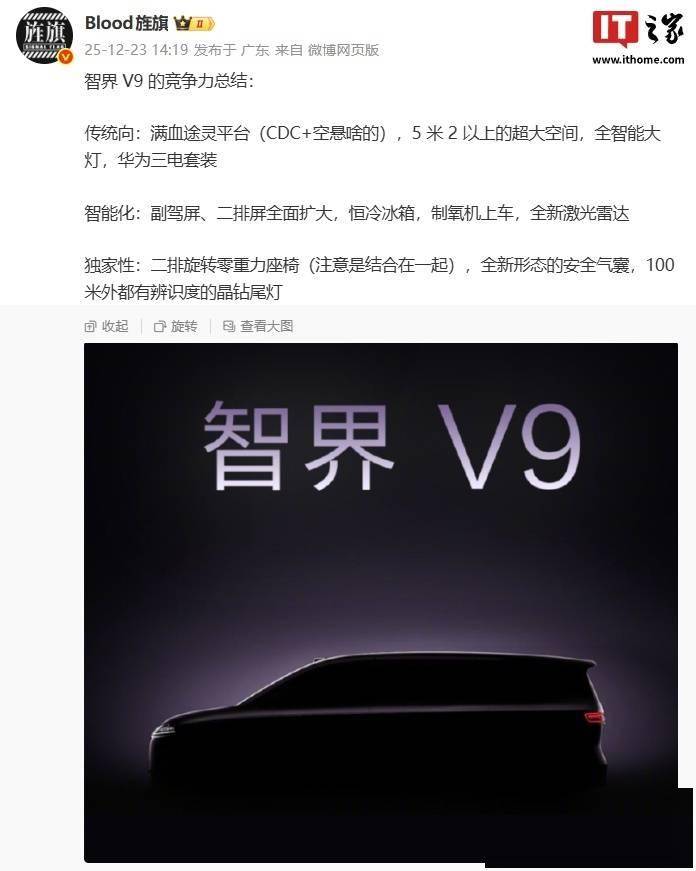 设计语言上,智界V9延续鸿蒙智行家族式前脸,采用贯穿式星轨灯带与主动进气格栅的组合设计,尾部搭载高辨识度晶钻尾灯组。路试视频显示,车辆配备空气悬架系统,离地间隙可在150-220mm间动态调节。本月举行的鸿蒙智行年度直播活动中,官方已确认该车型将于2025年第二季度正式上市,预计售价区间为45-55万元,主要竞品锁定为腾势D9、理想MEGA等高端MPV车型。