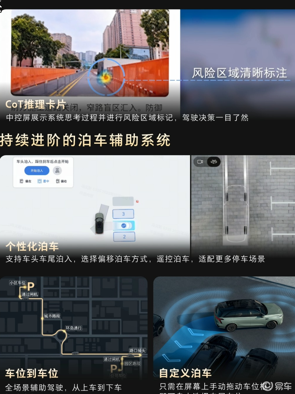 VLA大模型如同一位经验丰富的“领航员”,负责理解、预判与规划;Hi4性能版则恰似技艺精湛的“赛车手”,精准执行指令。二者实现毫秒级联动,在城市突发规避、恶劣天气稳控防滑、非铺装路面通行等复杂场景中,都能有效化解潜在风险,带来1 + 1>2的智慧出行体验。例如,当用户说出“小魏同学,远离大车”,系统便会主动规划路径,迅速拉开安全距离;防御性驾驶功能可提前预判风险,特殊场景理解功能能从容应对施工区、窄路等复杂路况,CoT推理卡片还会实时呈现决策逻辑,让智能驾驶过程透明可感。为保障大模型流畅运行,新车搭载算力达700TOPS的Thor - U超级芯片,并配备27颗智慧传感器,即便在雨雾等恶劣环境下,也能快速识别风险。