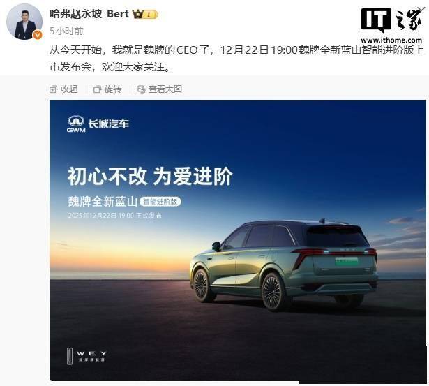 据公开资料显示,长城哈弗品牌总经理赵永坡已于12月21日正式接任魏牌CEO职务。值得注意的是,自2016年品牌创立以来,魏牌在九年间已更换八位CEO,其中上一任管理者冯复业今年5月才在蓝山焕新版发布会上完成首秀。这种频繁的人事变动,在汽车行业引发了广泛关注与讨论。