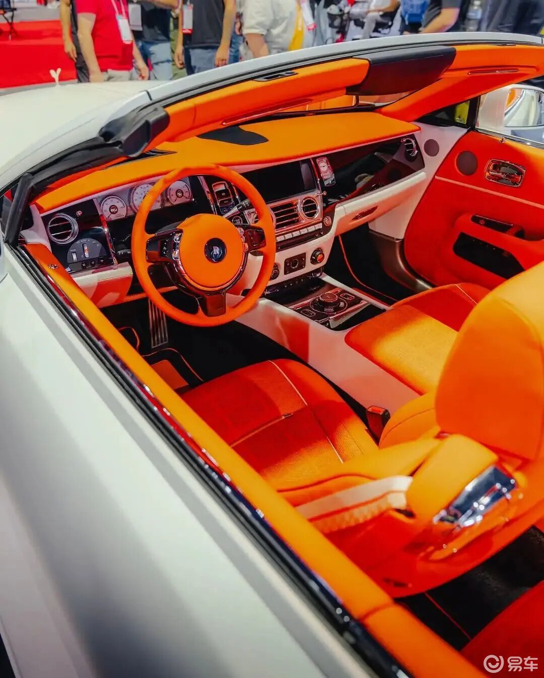 座舱空间延续外饰的撞色哲学,白色与橙色皮革的大面积运用彻底打破劳斯莱斯传统内饰的沉稳基调。细腻皮质与鲜明色彩的碰撞,不仅带来强烈的视觉冲击,更通过材质触感的差异化处理营造出多层次感官体验。虽然目前尚未确认该配色方案属于Venuum改装还是原厂Bespoke定制服务,但这种突破常规的搭配逻辑,显然与外观设计的张扬个性形成完美呼应。