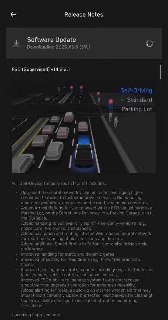 技术团队在圣诞假期期间持续推进系统迭代。FSD(监督版)v14.2.2版本向用户推送仅一天后,人工智能部门便紧急上线了v14.2.2.1优化版本。新版本重点提升了复杂环境下的决策能力,特别是在雨天、模糊路标等场景中的表现。