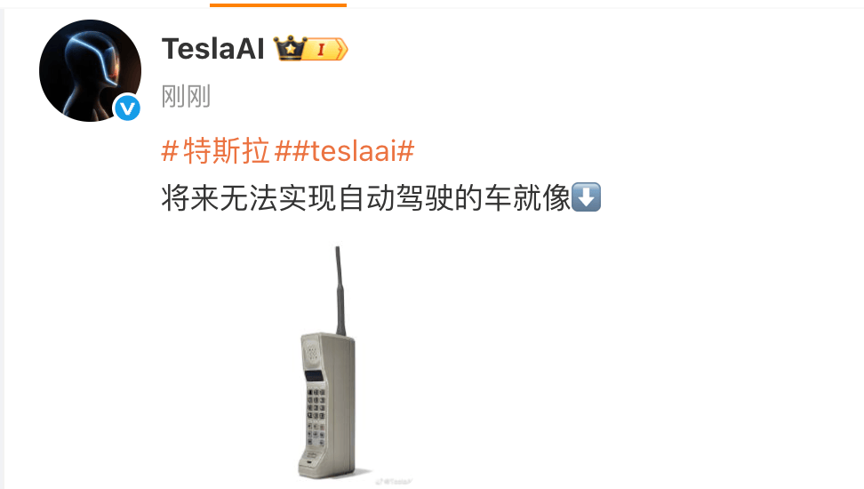特斯拉官方近日在社交平台发表观点,将未来无法达成自动驾驶功能的汽车比作早期的“大哥大”手机,暗示这类产品将逐渐被时代淘汰。这一言论引发了行业对自动驾驶技术普及进程的广泛讨论。