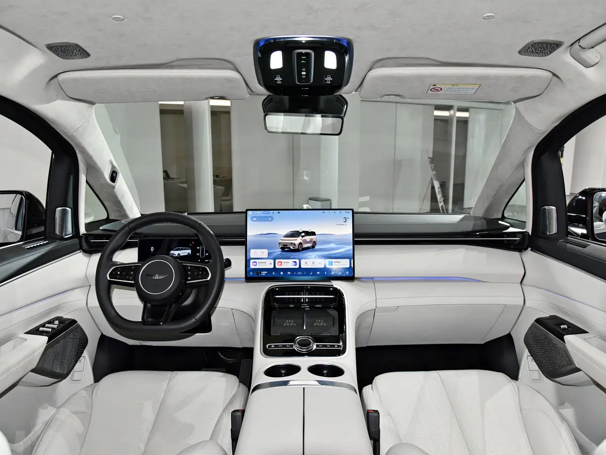 内饰配置方面,吉利银河V900配备了15.4英寸中控屏和10.25英寸仪表屏,二排还设有吸顶娱乐屏,扶手处装有5.98英寸功能控制屏。座椅采用云感SPA设计,支持加热、通风、记忆和SPA级按摩功能,二三排纵向空间超过1000毫米,确保乘坐舒适性。车内科技感与豪华感并存,满足用户对高品质出行的追求。