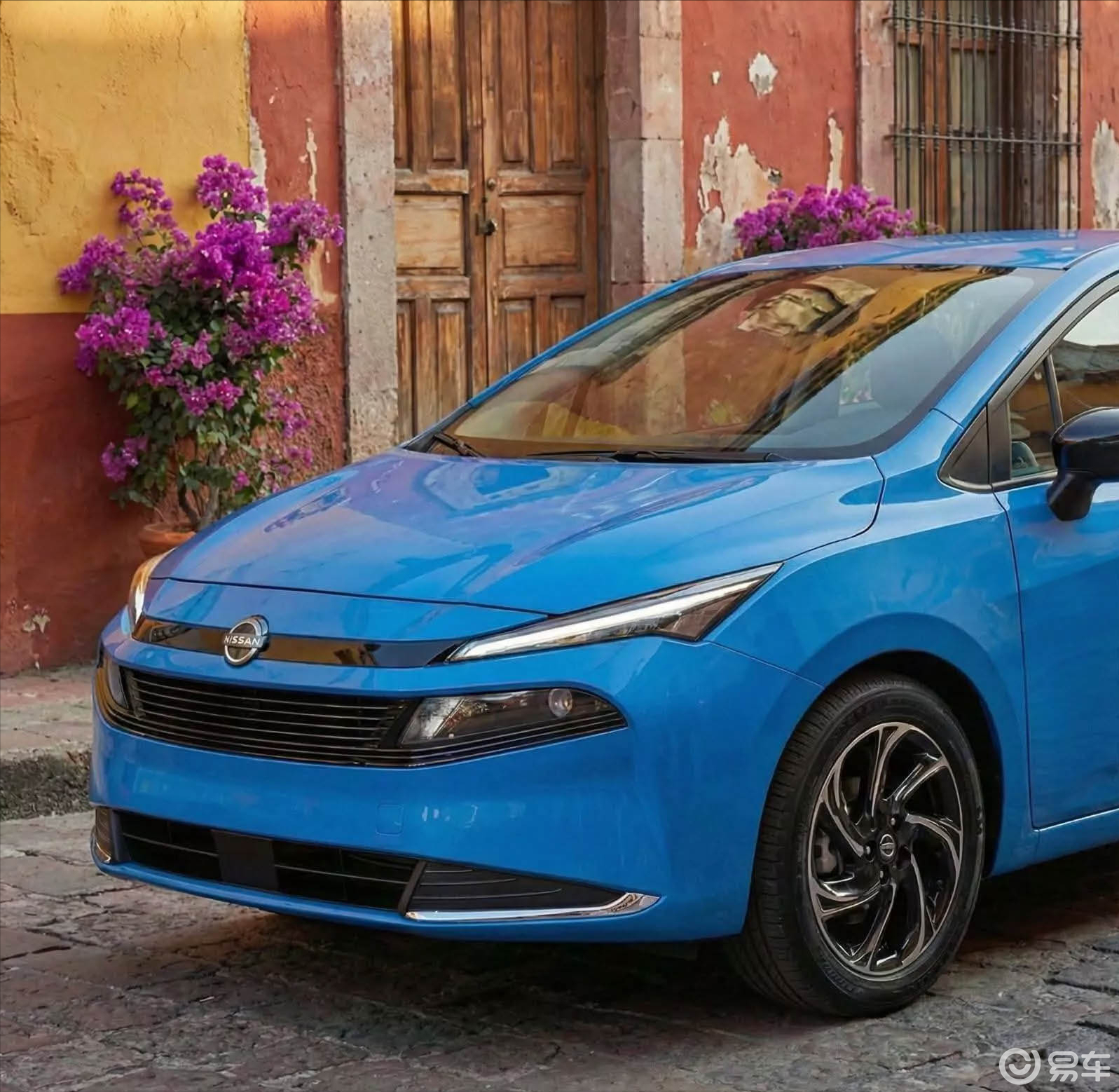新车前脸采用分体式灯组设计,上方为纤细的LED日间行车灯带,通过黑色饰条与日产品牌徽标横向贯穿,形成视觉延伸效果。下方主灯组嵌入梯形格栅两侧,格栅内部采用横向条纹装饰,配合下方收敛的进气口造型,整体前脸层次分明且不失运动感。轮毂升级为多辐式铝合金材质,进一步强化了车辆的现代气质。