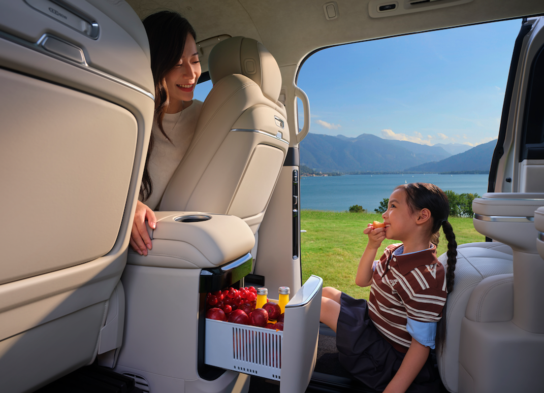 1334mm的同级最大车内高度,搭配200mm宽的二排中央通道,为家庭成员活动提供便利。10岁以下儿童可在车内自由站立、穿行,二排乘客无需起身即可照料三排儿童,有效降低长途出行的照料压力。配置层面,二三排座椅均配备加热、通风、记忆及SPA级按摩功能,且支持躺倒调节,长途驾乘可实现如居家般的放松体验。超宽温域冷暖箱可在-6℃至50℃精准控温,满足四季饮品存储需求;二排双小桌板兼具办公、零食分享与学习功能,贴合多孩家庭场景需求。