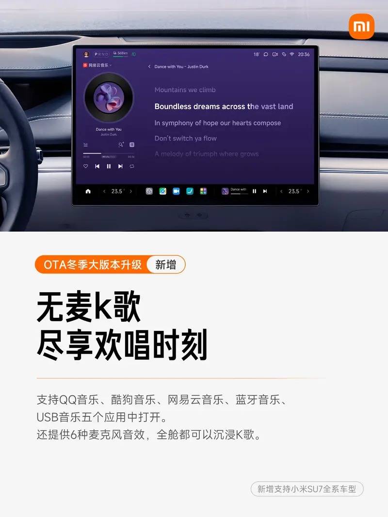 娱乐系统新增无麦K歌功能,用户无需连接麦克风即可在车内畅享K歌体验,支持多款主流音乐应用。同时,系统为多个音乐类App适配了沉浸式音效,通过车载音响系统营造出更具空间感的听觉享受。充电地图功能也得到优化,新增充电站筛选条件、价格显示及空闲桩位信息,帮助用户更高效地规划补能路线。