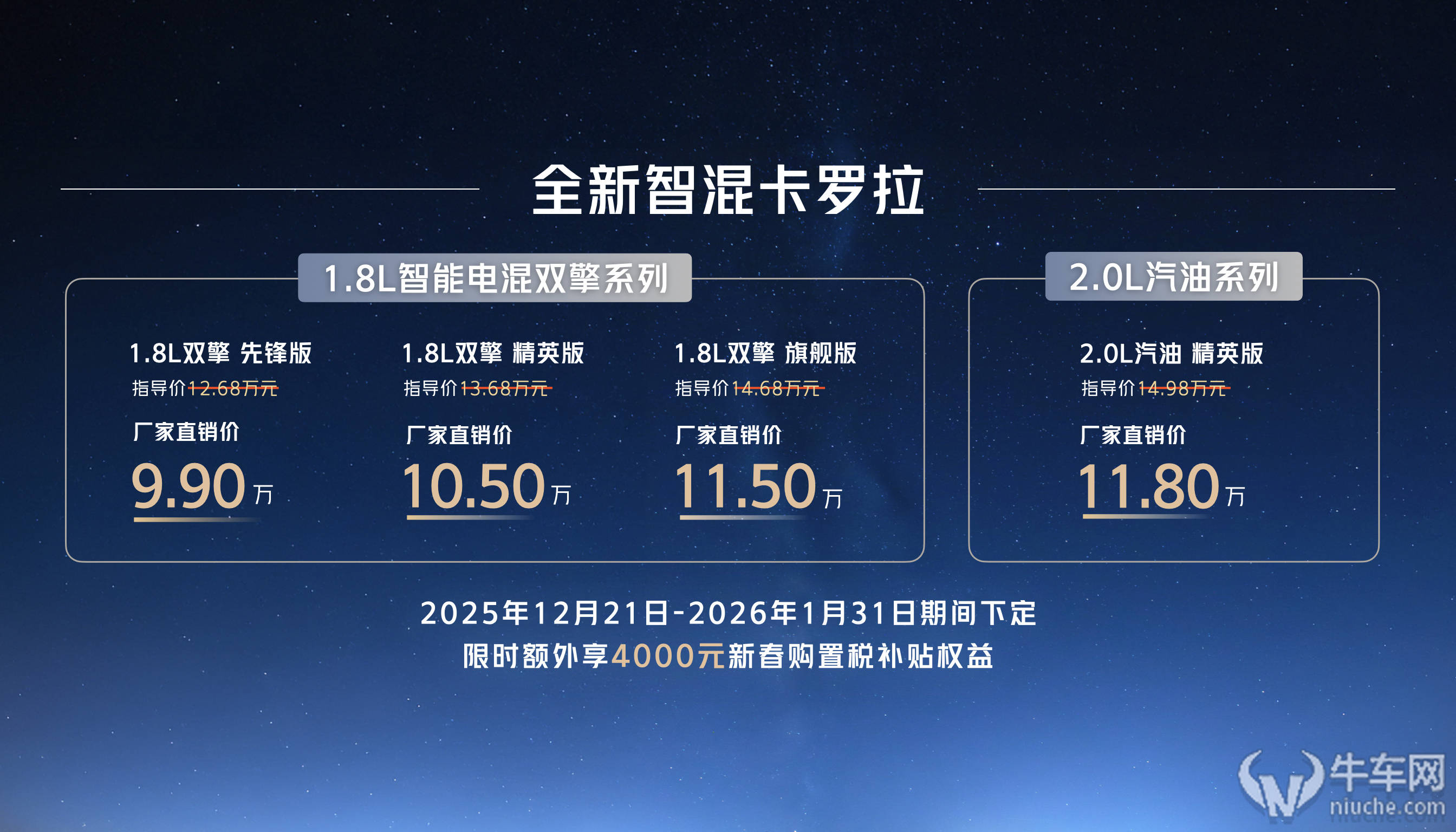 一汽丰田全新智混卡罗拉正式登陆市场,以“全球好品质 中国新家轿”为核心理念,推出四款配置车型,官方指导价区间为9.9万元至11.8万元。即日起至1月31日,消费者下订可享4000元新春购置税补贴,为家庭用户提供更具吸引力的购车选择。