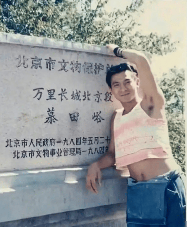 在曝光的影像中,邓丽君的证件照尤为引人注目。照片里的她未施粉黛,眉眼间流转着温婉的气质,被网友盛赞"美得令人屏息"。这位歌坛传奇在九十年代虽已逐渐淡出公众视野,但她的经典作品至今仍在传唱,成为跨越时代的文化符号。另一张长城上的留影则展现了刘德华的率性一面——头戴清朝辫子帽,身着深蓝背带裤搭配粉白条纹背心,单手叉腰的姿势尽显自信洒脱。这组拍摄于1994年的照片,如今看来依然充满时尚张力。