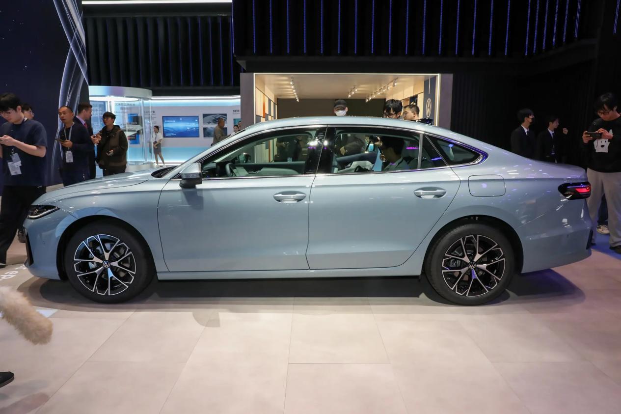 外观方面,帕萨特ePro采用全新设计语言,整体风格更贴近新能源车型的简洁科技感。车身线条流畅,前后贯穿式灯组与可点亮LOGO形成呼应,IQ.Light矩阵式LED大灯组全系标配,点亮后兼具辨识度与精致感。侧面造型延续大众品牌一贯的大气优雅,笔直腰线贯穿车身,花瓣样式双色低风阻轮毂增添运动气息。尺寸数据上,新车长宽高分别为5017/1850/1489mm,轴距2871mm,与现款燃油版车型保持相近水平,定位中型轿车市场。
