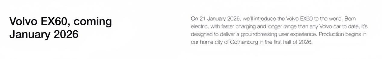 作为沃尔沃电动化战略的核心车型,EX60上市后将直接竞逐宝马iX3、特斯拉Model Y等热门车型主导的中型纯电SUV市场。其能否凭借北欧设计美学、创新安全科技以及长续航优势突围,将成为2026年新能源汽车市场的重要看点。
