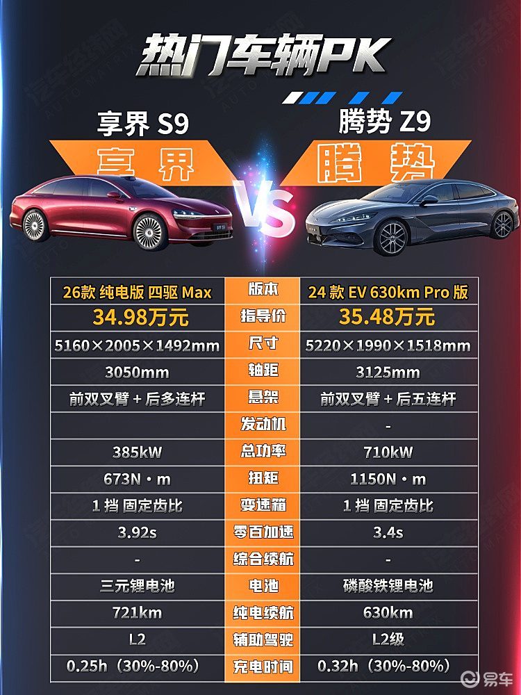 在国产汽车品牌向高端市场发起全面冲锋的2025年,华为系与比亚迪旗下两大旗舰车型——享界S9与腾势Z9,凭借各自的技术突破与产品力革新,成为中大型纯电轿车领域的焦点。这两款定价相近、定位重叠的车型,在智能化、动力性能与豪华配置上展开激烈角逐,为消费者提供了截然不同的技术路线选择。