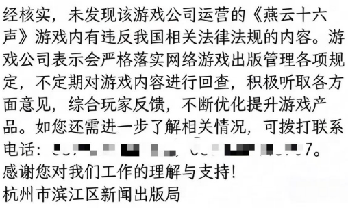近日,游戏《燕云十六声》上线新时装引发网友争议。12月27日,有投诉人陆续在社交平台晒出政府的回复,表示未发现《燕云十六声》游戏内有违反我国相关法律法规内容。