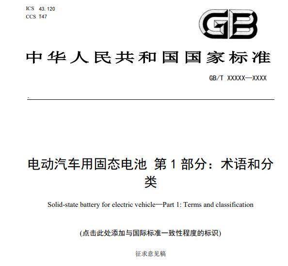 12月30日,相关部门就《电动汽车用固态电池第1部分:术语和分类》这一标准面向社会公开征集意见。该征求意见稿对固态电池的基础性内容进行了明确界定,包括相关术语的定义、分类方式以及编码规则等。