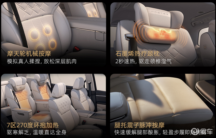 内饰空间全面升级智能座舱系统,全系标配基于鸿蒙OS开发的交互界面,支持触控、语音、手势三模交互方式。核心配置包含车载冰箱、YAMAHA环绕音响系统、第二排双零重力座椅及第三排电动调节功能。中高配车型进一步配备17.3英寸后排娱乐屏,并可选装华为乾崑智能驾驶辅助系统,实现L2+级自动驾驶能力。车机系统支持多屏联动、车家互联及智能钥匙管理,提供手机App、NFC卡片、实体钥匙三种解锁方式,并具备远程授权用车功能。