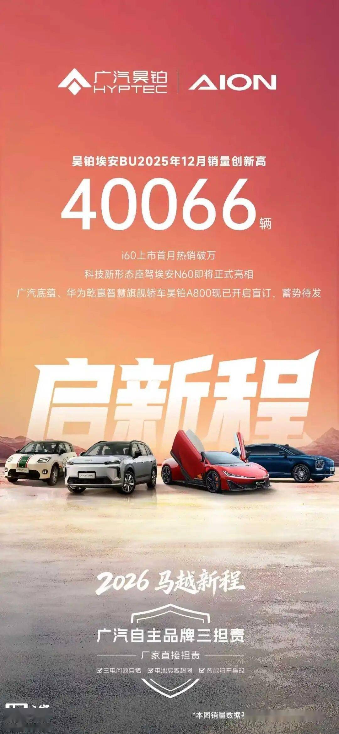 改革成效初显,最新销售数据显示,昊铂埃安BU在2025年12月交出亮眼成绩单:单月销量突破40066辆,创下历史新高。其中,新上市的i60车型首月销量即突破万辆大关,成为品牌增长的新引擎。与此同时,该业务单元宣布将推出科技感十足的全新座驾埃安N60,进一步丰富产品矩阵。