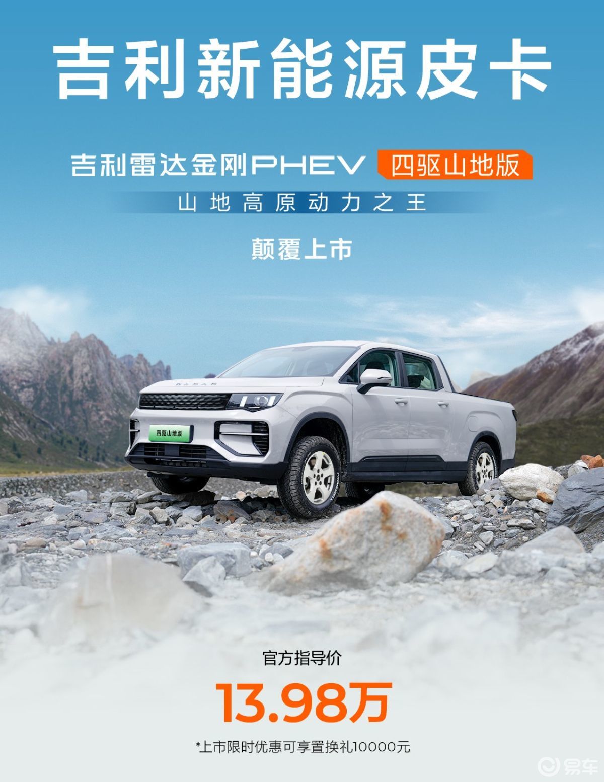 在新能源汽车市场激烈角逐的当下,吉利雷达品牌凭借精准的市场洞察,针对特定区域用户需求推出两款高性能皮卡——金刚PHEV山地版与地平线PHEV高寒版,以场景化细分策略开辟差异化竞争赛道。两款车型均搭载雷神EM-P超级电混系统,通过动力、舒适、安全、续航等维度的深度优化,重新定义特殊环境下的皮卡使用标准,为西南西北高原山区及东北西北高寒地区用户提供兼具实用性与品质感的出行解决方案。