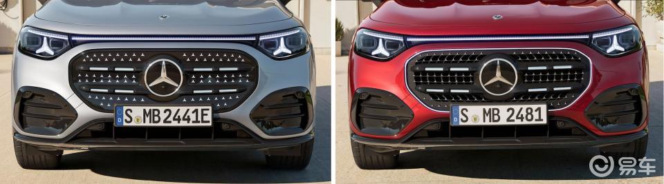 在外观设计上,全新GLB延续了上一代的风格,但细节处进行了优化。燃油版采用镀铬星阵格栅,并配有发光边框;纯电版则采用覆盖式灯光面板,由94颗三叉星辉光点组成,可在上下车时点亮,营造出更具档次感的氛围,同时提升了辨识度。