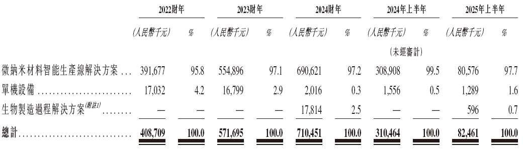 琥崧科技的业务布局涵盖三大核心板块。首先是微纳米材料智能生产线解决方案,公司为新能源电池材料、精细化学品等生产提供定制化方案,覆盖从给料、储存到包装的全流程工艺,实现粉料、浆料等材料的高效处理。其次是单机设备业务,公司独立研发并生产智能分散设备、智能研磨设备及粉料输送系统等核心设备,同时提供储料仓、除尘净化设备等辅助设备。第三大板块是生物制造过程解决方案,公司于2024年7月收购赛德齐瑞后,将业务扩展至发酵、液体制备、脱毒等生物制造领域,服务生物制药、特殊医疗食品等行业。