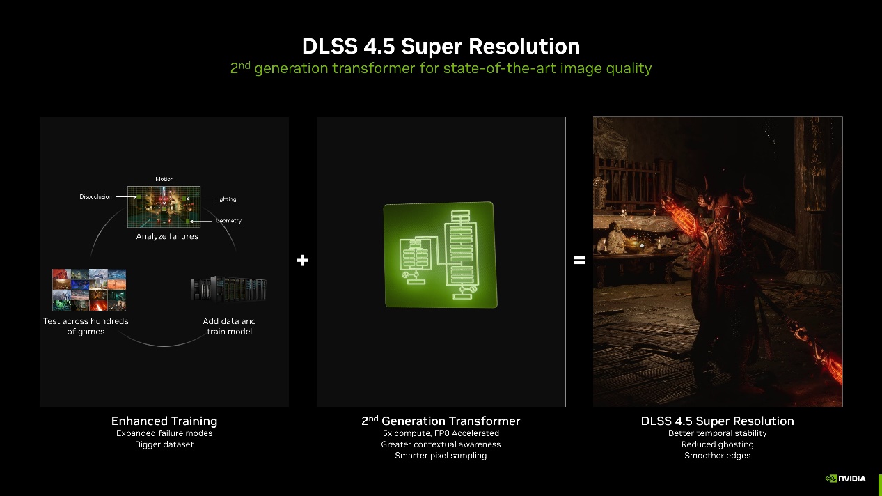 技术核心层面,DLSS 4.5搭载的第二代Transformer模型展现出强大实力。其计算效能较前代提升五倍,能够精准解析游戏场景动态变化,在光照处理方面实现重大突破。通过摒弃传统对数空间抗闪烁算法,转而采用基于游戏引擎原生线性空间的AI训练体系,光线渲染更符合物理规律。在高对比度场景中,金属反射、霓虹光效等细节呈现显著提升,色彩过渡更加自然流畅。这项优化专为GeForce RTX 40/50系列GPU设计,充分释放硬件潜能。