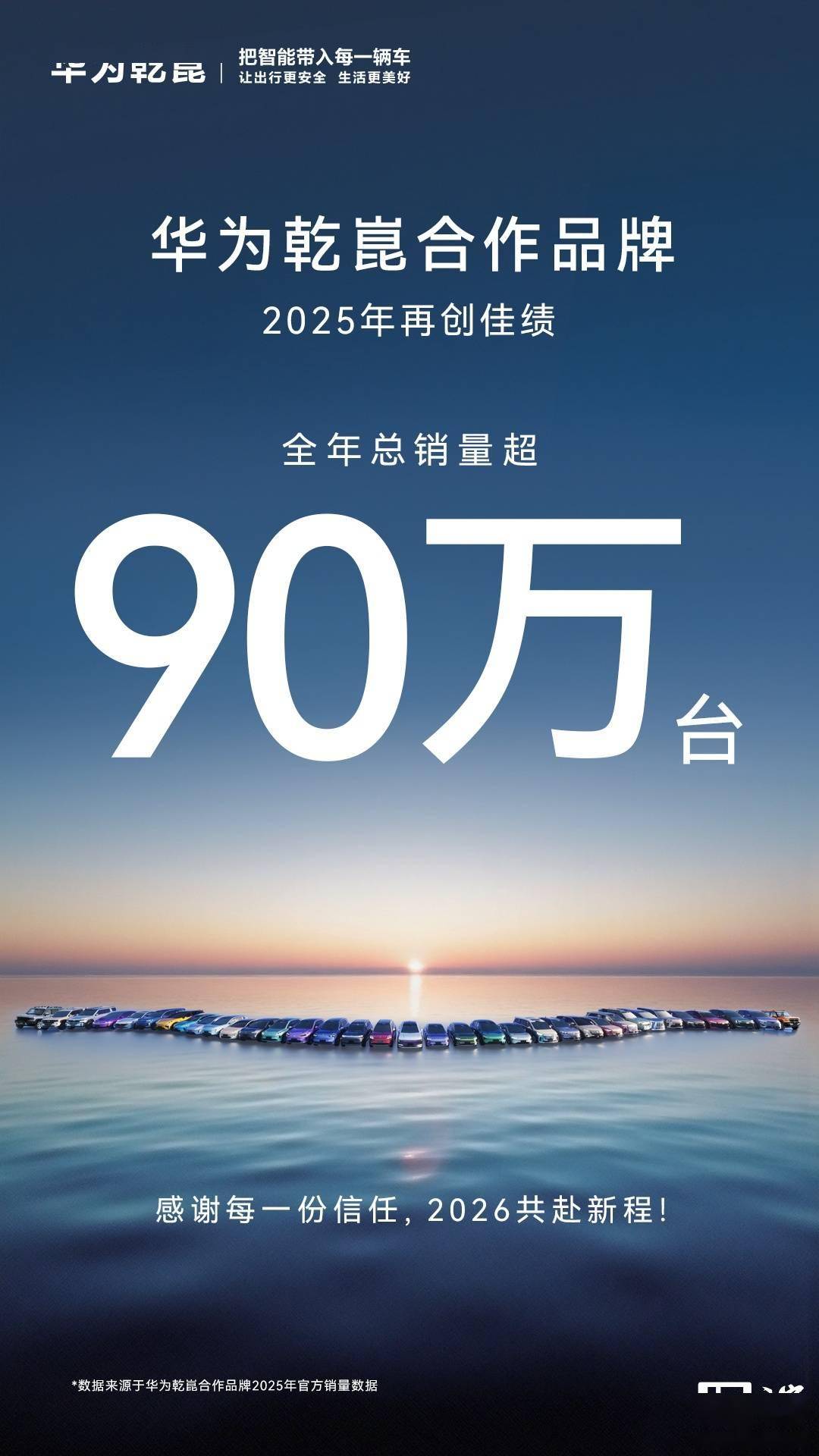 华为乾崑智能汽车解决方案近日公布了2025年合作品牌的销售成绩,全年总销量突破90万台,再次刷新纪录。这一数据涵盖多个搭载乾崑技术的汽车品牌,标志着华为在智能汽车领域的市场影响力持续扩大。