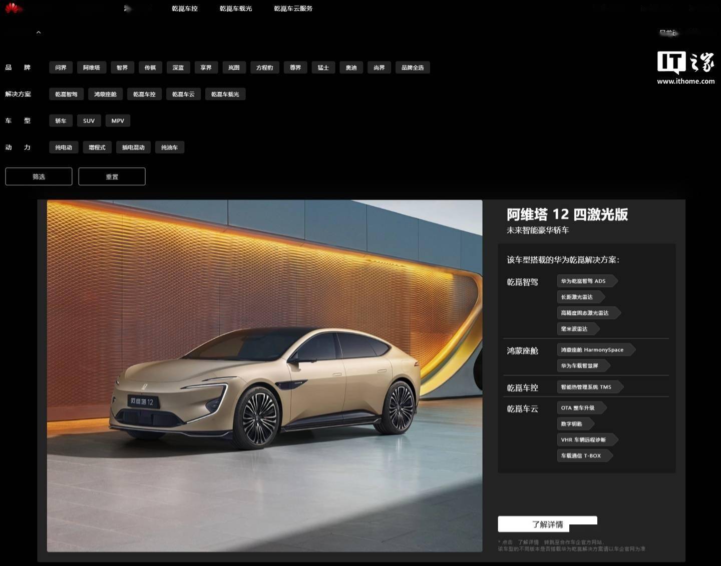 华为乾崑智能汽车解决方案的官方信息显示,其合作范围涵盖智驾、座舱、车控、车云及车载光五大领域。目前与阿维塔、岚图、传祺、深蓝、方程豹、东风猛士、奥迪等品牌展开深度合作,这些品牌的车型销量均被纳入总成绩统计。随着技术不断迭代,华为与更多汽车品牌的合作正在推进中。