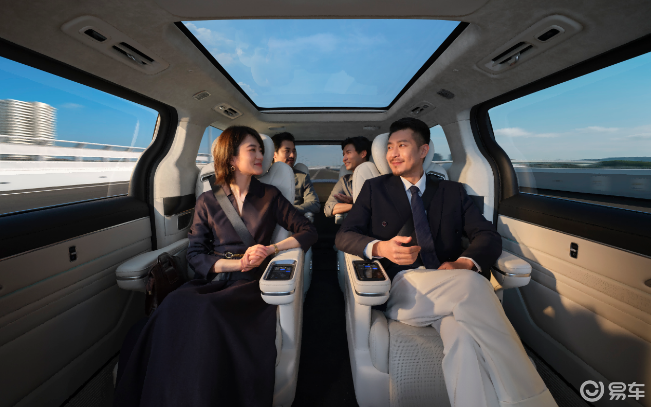 车内空间表现尤为突出,91.8%的得房率领先同级,二三排纵向空间均超1000mm,1.8米身高乘客亦可舒适伸展;1334mm车内高度与200mm二排中央通道,允许儿童在车内自由活动,家长可轻松照顾后排乘客。后备箱容积超1000L,可容纳15个20寸行李箱,满足全家出行需求。云感SPA座椅支持加热、通风、记忆及按摩功能,配合-6℃~50℃超宽温域冷暖箱与二排双模小桌板,细节设计贴合家庭场景。