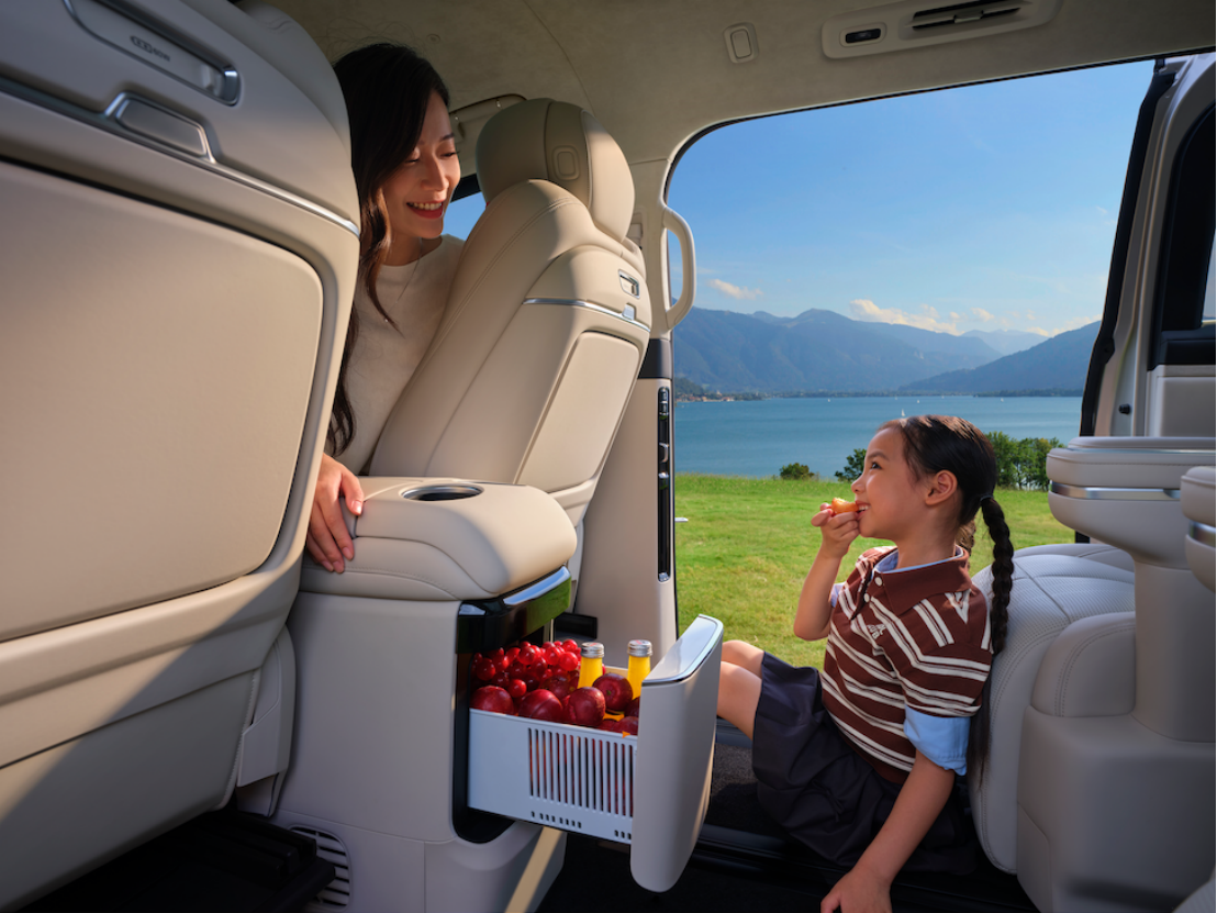 舒适性配置上,新车搭载云感SPA座椅,支持加热、通风、记忆及SPA级按摩功能,有效缓解长途乘坐疲劳。27扬声器Flyme Sound音响系统与后排17.3英寸娱乐屏的组合,为乘客提供沉浸式视听体验;9.1L冷暖箱可在-6℃至50℃间调节温度,适配冷饮保鲜与热食保温需求;二排双模小桌板则满足移动办公、亲子学习等场景使用。